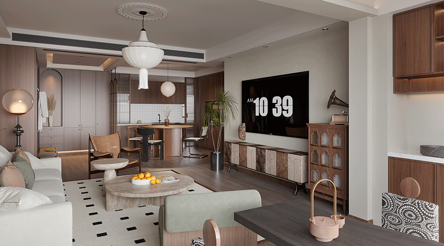 在功能分區(qū)上,既保證各區(qū)域相對獨(dú)立,又通過拱形門洞等設(shè)計(jì)實(shí)現(xiàn)視覺連通,讓空間富有層次。軟裝搭配注重細(xì)節(jié),花藝、裝飾畫、擺件等,為空間增添藝術(shù)氣息與生活溫度,整體打造出兼具復(fù)古韻味與現(xiàn)代舒適感的居住環(huán)境。
